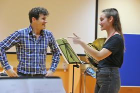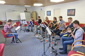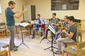 Nach einem gemütlichen Freitagabend, wurde am Samstagvormittag und -nachmittag unter der Leitung von professionellen Dozenten, darunter Heiko Triebener (Solo-Tubist der Bamberger Symphoniker und 2016 Gastsolist der Bläserphilharmonie), in den einzelnen Registern geprobt. Abends gab es dann noch eine Tutti-Probe mit dem gesamten Orchester unter der Leitung von Dirigent Mathias Wehr. Besonderes Highlight an dem Abend war das erste gemeinsame Proben des Werkes "Menosgada" (aus der Feder von Mathias Wehr) zusammen mit Waldhornsolistin Anna Werner, die zuvor als Dozentin des Waldhornregisters im Einsatz war.