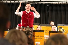 Ein "Back to the Roots" gab es für Klarinettistin Sina Herbst, die im Duett mit ihrem Klarinetten-Partner Alexander Stadler bei der "Dudelsack-Polka" von Jaroslav Novak einen kleinen Teil ihres virtuosen Könnens aufblitzen. Von Trompeter Manuel Scheuring, der aus Volkach kommt und sein Hobby ebenfalls zum Beruf gemacht hat, kam die legendäre Titelmelodie aus dem Westernklassiker "Spiel mir das Lied vom Tod" des weltbekannten Komponisten und Dirigenten Ennio Morricone.