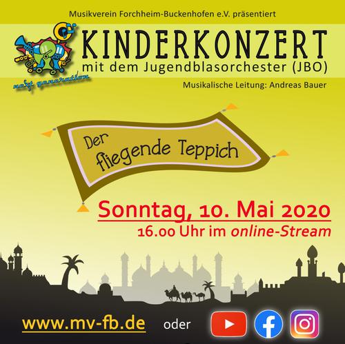 "Die neue Reihe der Kinderkonzerte für Kinder im Vor- und Grundschulalter stellt das Hören und Erleben von Musik in den Vordergrund. In diesem Konzert präsentiert das Jugendblasorchester die spannende Geschichte von Kassim und dem fliegendem Teppich. Dabei ist das Format speziell auf die Bedürfnisse der Kleinen Zuhörer angepasst und lässt sie in einer familiären Atmosphäre ganz nah an die Musik und das Orchester herankommen. Es lädt ein zum Mitsingen und Mitmachen, aber auch zum Stillwerden und Zuhören."