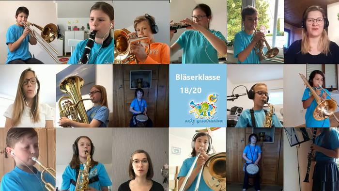 Die Bläserklasse '18-20 meldet sich aus dem Home-Office und sendet mit Kokoleoko musikalische Grüße in die Welt.