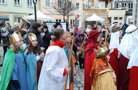 Die Prozession startete an der evangelischen Kirche St. Johannis, in der zuvor die thematische Einstimmung stattfand und führte zum Marktplatz. Dort angekommen wurde u.a. gemeinsam gesungen . 350 Sternsinger nahmen teil und es war ein toller Anblick so vieler Könige. Es war ein schöner Zufall, dass Herwig Gössl diesmal als neuer Erzbischof von Bamberg an der Eröffnung teilnehmen konnte. Papst Franziskus hatte ihn am 9. Dezember 2023 zum neuen Erzbischof von Bamberg ernannt.