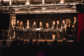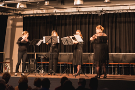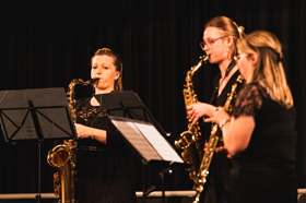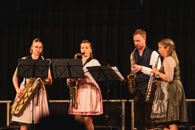 Das Querflöten-Quintett unter Johanna Trautner verzauberte mit irisch-keltischen Klängen aus Catherine McMichels musikalischer Erzählung A Gaelic Offering. Tim Lochner und seine drei Kolleginnen präsentierten ein Saxophon-Quartett, das sich gekonnt und selbstbewusst über verschiedene Genres erstreckte: Im ersten Teil gab es Electro-Pop von Harold Faltermeyer (Axel F aus Beverly Hills Cop), später folgte George Gershwins Musical-Klassiker I Got Rhythm. Zum Abschluss konnten die Zuhörenden das Quartett nochmals erleben, diesmal im folkloristischen Gewand mit der Weinkeller-Polka und dem mitreißenden Blasmusik-Klassiker Wir Musikanten.