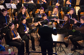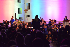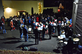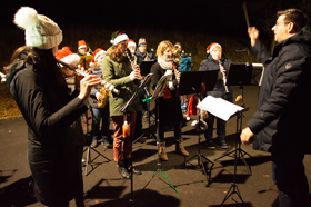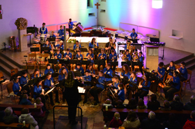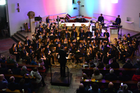 Zum Schluss wurde es noch einmal richtig voll in diesem "Klangraum Kirche", als alle Musizierenden gemeinsam mit den Zuhörern bei "O du fröhliche" ihre Vorfreude auf das Weihnachtsfest hinausposaunten. Auf dem Kirchplatz unter dem Glockenturm gab es dann noch weihnachtliche Musik bei leckerem Glühwein und Plätzchen von einem Ensemble aus dem Blasorchester Klangfusion, welches unter dessen Leitung, Andreas Friesner, dirigiert wurde. Wir blicken glücklich und stolz zurück auf ein wunderschön gelungenes Adventskonzertwochende unserer Nachwuchsmusiker. Weitere Fotos finden Sie in unserer Bildergalerie.
