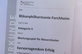 Einen weiteren, großartigen Erfolg kann der Musikverein Forchheim-Buckenhofen der inzwischen 52-jährigen Vereinschronik hinzufügen! Sein Aushängeschild, die Bläserphilharmonie Forchheim (BPF), absolvierte am 30.05.25 im Rahmen des 7. Deutschen Musikfestes in der "Doppelstadt" Ulm und Neu-Ulm ihr Wertungsspiel mit einem spektakulären Ergebnis: Sie erreichte sagenhafte 97,2 von 100 möglichen Wertungspunkten, die die Jury zu vergeben hatte! Dieses Ergebnis ist umso bemerkenswerter, da es in der sogenannten "Kategorie 5" zustande kam, der höchsten Wertungsspielkategorie für Laienblasorchester in Deutschland. Insgesamt 21.500 Teilnehmer:innen aus 445 Vereinen, Spielmannszügen und ähnlichen Formationen hatten sich für dieses Großereignis angemeldet, das erstmals in zwei Städten und, nur durch den Verlauf der Donau getrennt, gleichzeitig in den Bundesländern Baden-Württemberg (Ulm) und Bayern (Neu-Ulm) stattfand.