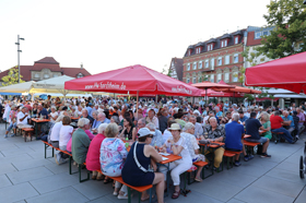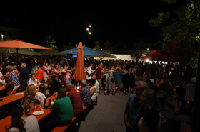 So füllten sich mit den ersten Takten der Buckenhofener Blasmusik die Sitzplätze trotz noch intensiver Sommerhitze rasch, und als sich die Sonne verabschiedet hatte, füllten nahezu 1.000 Besucher den gesamten Platz und auch die umliegenden Lokale.